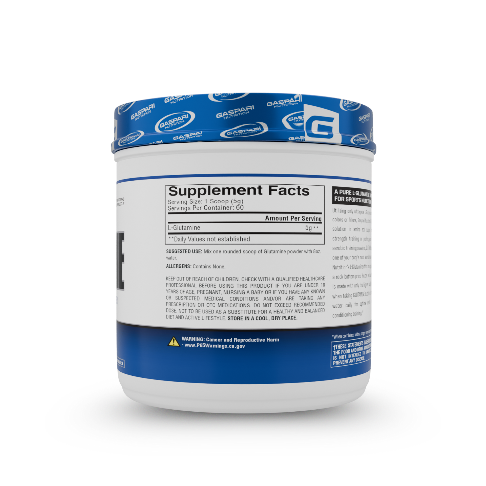 Suggested Use: Mix one rounded scoop of Glutamine powder with 8oz water.